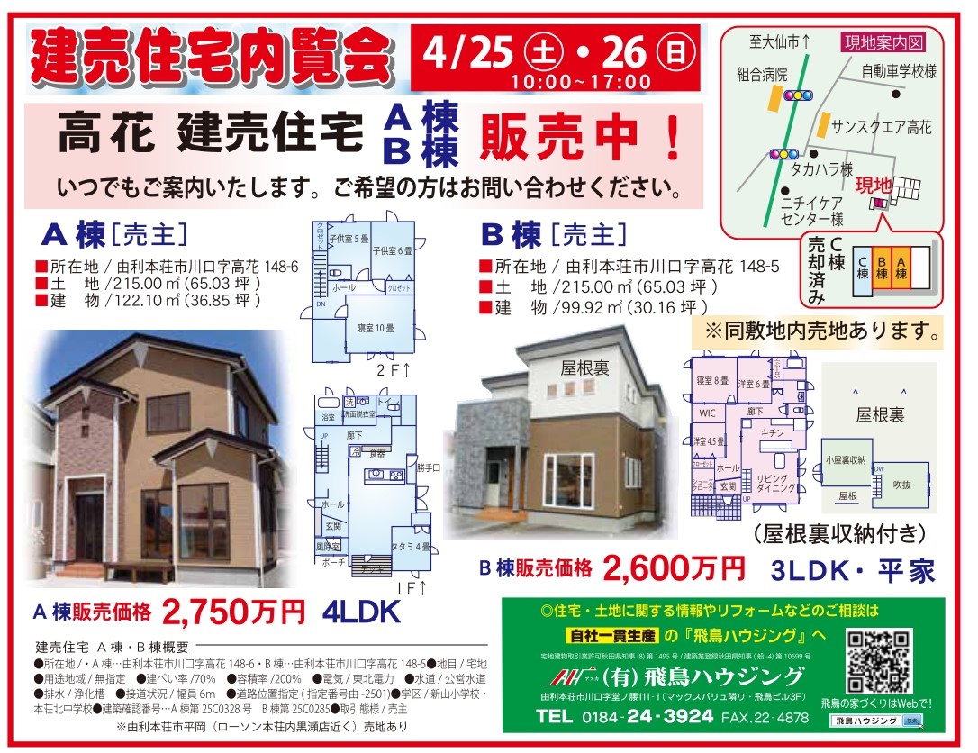 所在地:由利本荘市川口字高花148-5 (本荘自動車学校近く)